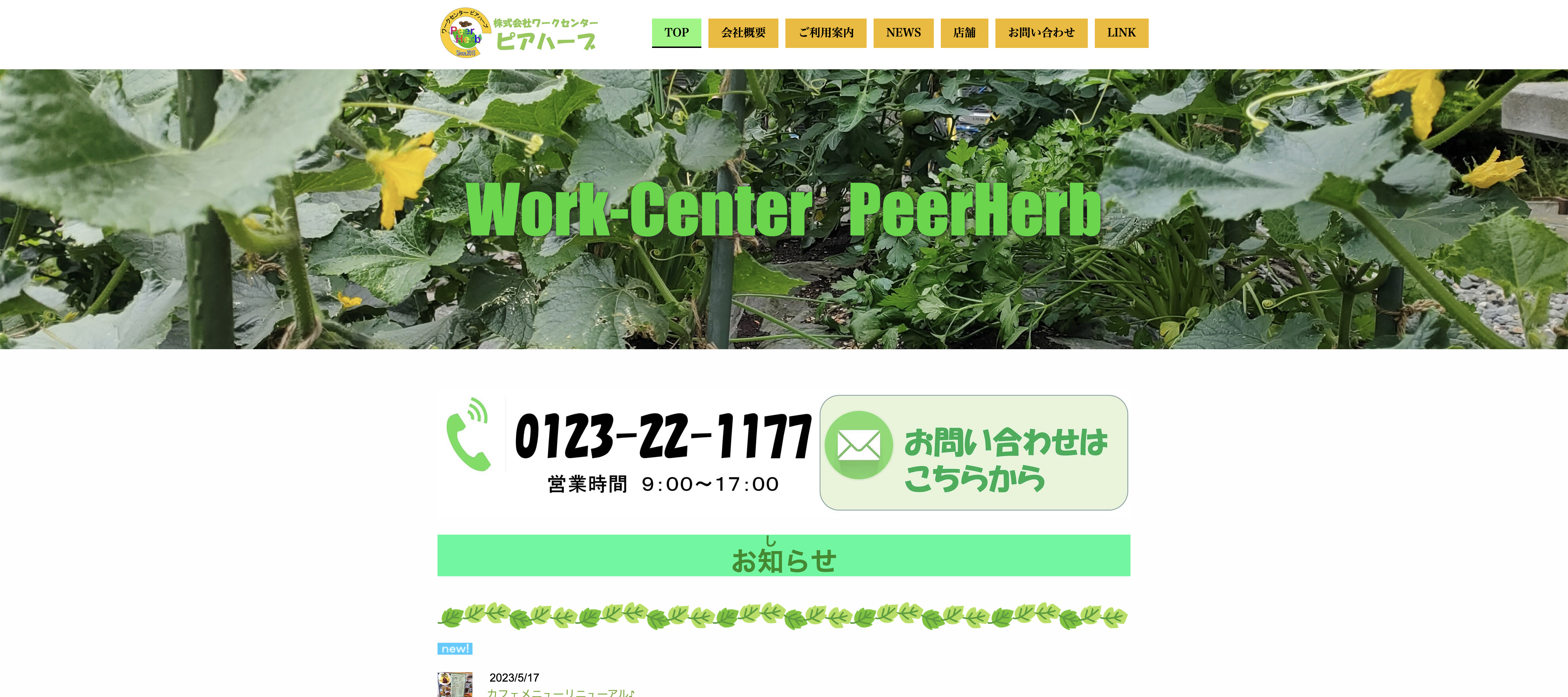 「ワークセンターピアハーブ」のウェブサイトは、北海道千歳市で就労継続支援A型事業所として活動する同社の情報を提供しています。