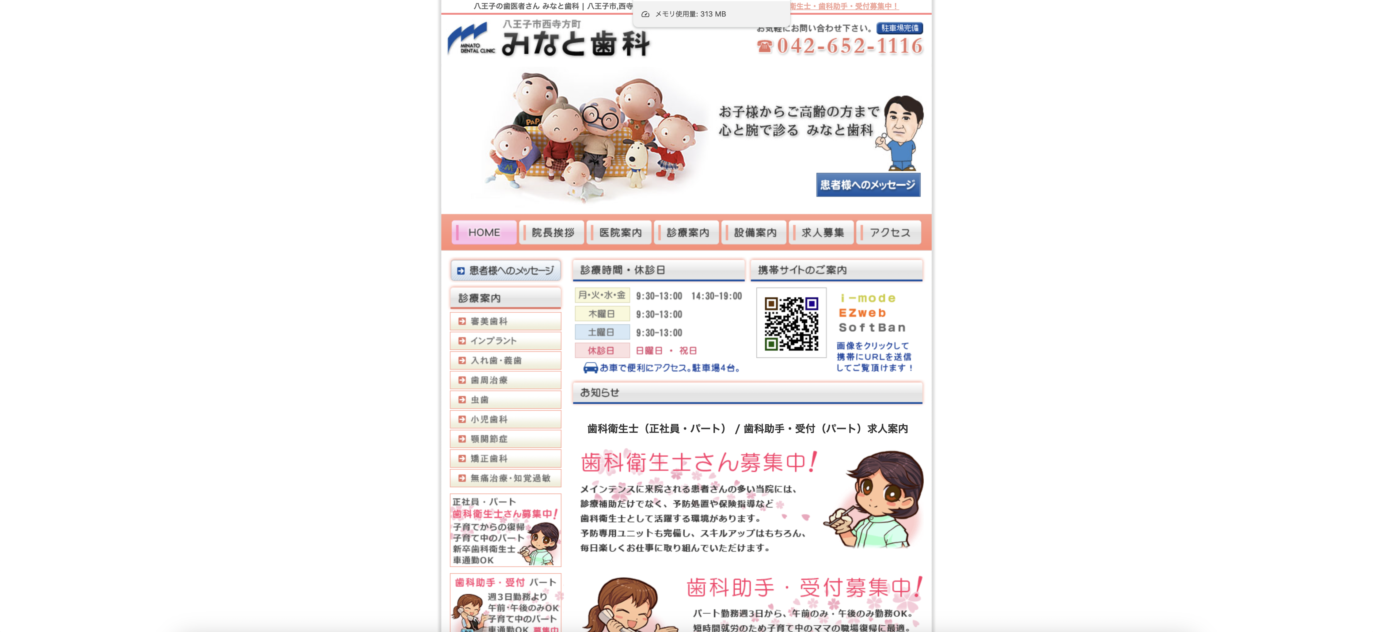 コンテンツの量は、多くありませんが写真を大きく使い「どんな所で、どんな人たちが診てくれるのか」を感じ取ることができます。